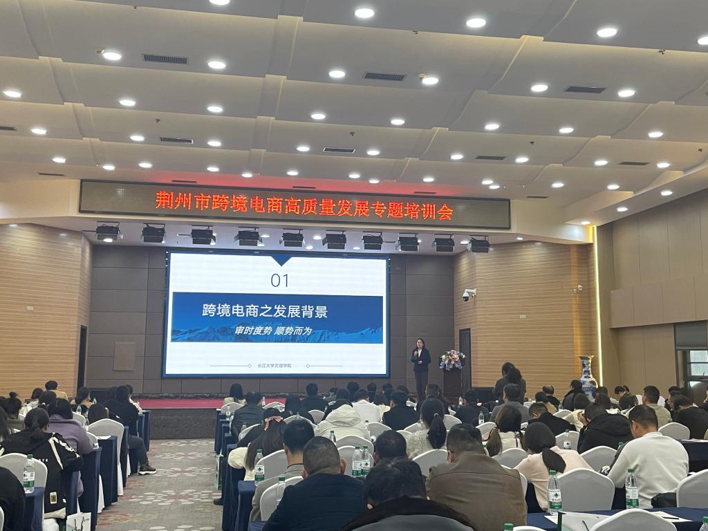 本网讯(通讯员 许静婷)12月4日,荆州市跨境电商高质量发展专题培训会举行。公司太阳集团tyc9728常务副经理韩翠萍受荆州市商务局邀请在会上进行了《校企合作 产教融合 共育跨境电子商务人才》的发言。