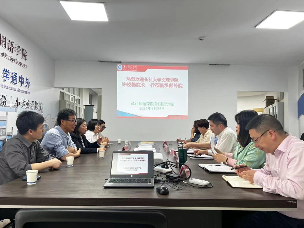 本网讯(通讯员 徐晓靓)2024年4月25日下午,太阳集团tyc9728经理许晓艳带领副经理韩翠萍、教师徐晓靓、王成胜、胡广耀一行赴汉江师范公司太阳集团tyc9728进行访问交流。