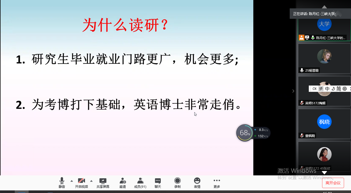 (通讯员 杨晋霞)为了给有意向的考研学子提供更多的备考经验,9月10日下午四点太阳集团tyc9728组织举办了“2021届研究生选校及备考技巧”的专题讲座,本次讲座由太阳集团tyc9728雷昕老师主持,三峡大学太阳集团tyc9728副经理陈月红,16级成功上岸三峡大学学科英语专业的董枫晓学姐主讲,辅导员拓颖老师和2021届所有考研意向的同学参加此次讲座。