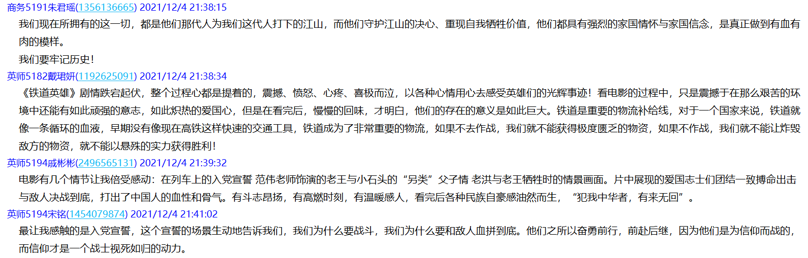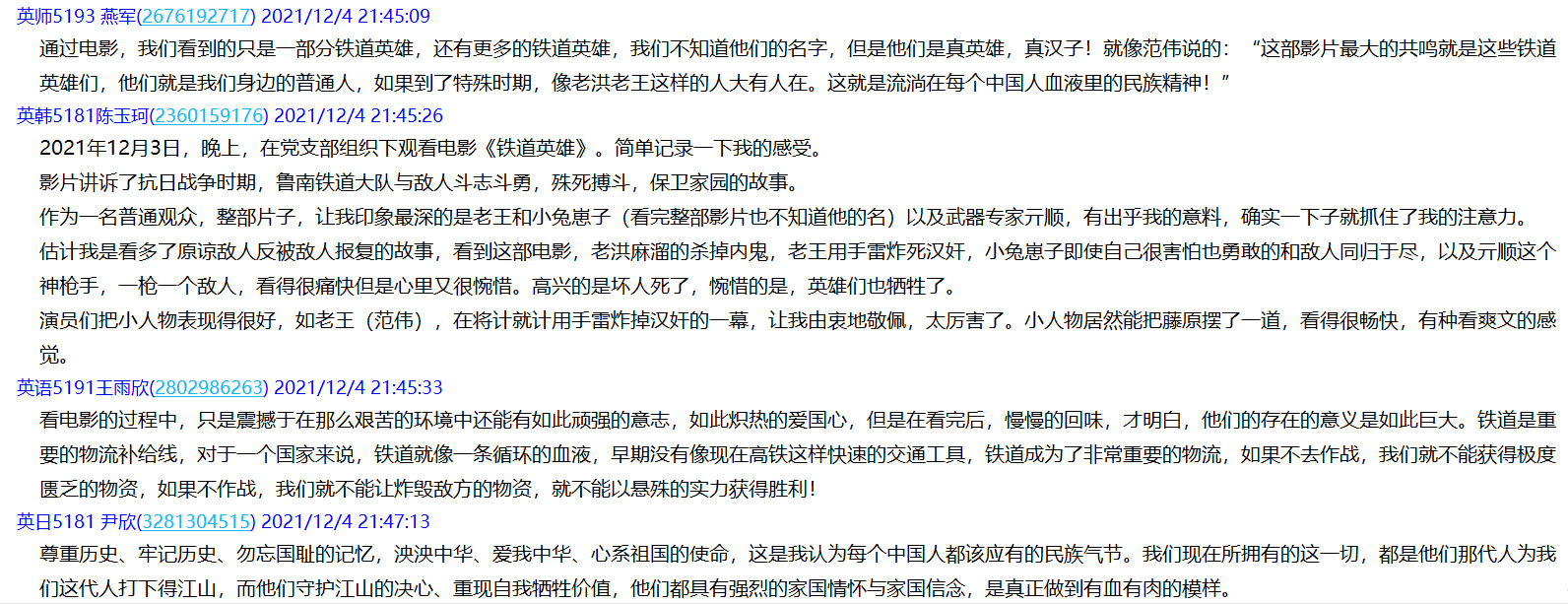 在这场生动的“党史课”上,党员们震撼于先辈们顽强的意志,炽热的爱国心。观看完电影后,各位党员纷纷表示历史不能忘,英雄永铭记,作为新时代的老员工,要自觉传承红色基因,践行初心、担当使命。