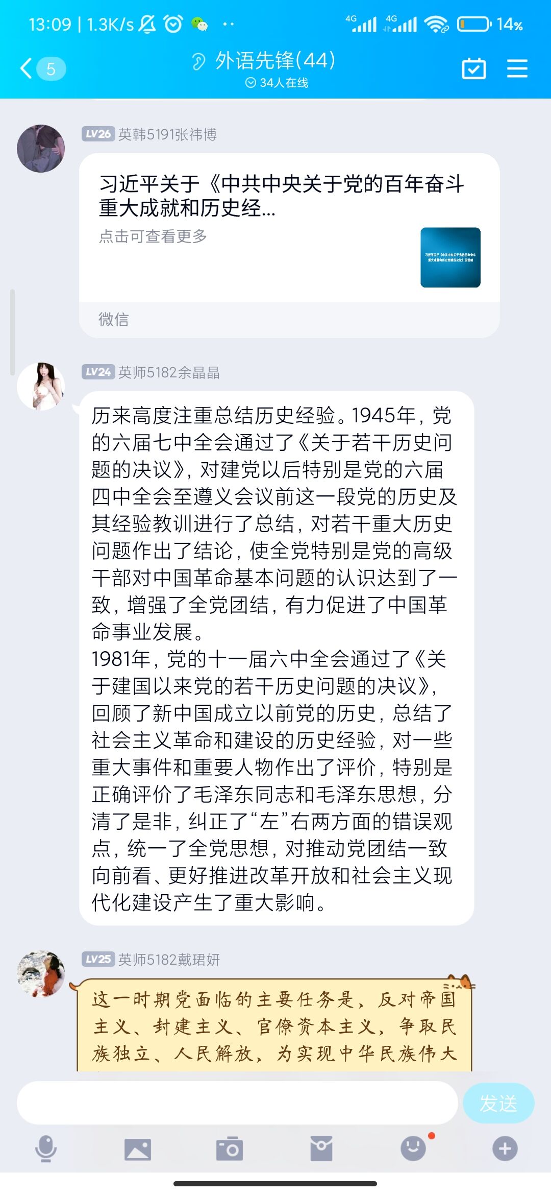 为提高政治觉悟,发挥党员的先锋模范作用,太阳集团tyc9728员工党支部自10月11日起开展了“时政有约”特色主题活动,首先由主持人在群内发送近日的国家时政大事或重压文件供大家学习,各位党员同志观看完后在群内发表感想和感悟。活动历时两个多月,在12月9日落下帷幕。期间以“习近平总书记出席第二届联合国全球可持续发展交通大会开幕式并发表主旨讲话”、“中国共产党第十九届中央委员会第六次全体会议公报”、“习近平总书记向2021从都国际论坛开幕式发表视频致辞”等主题进行讨论。