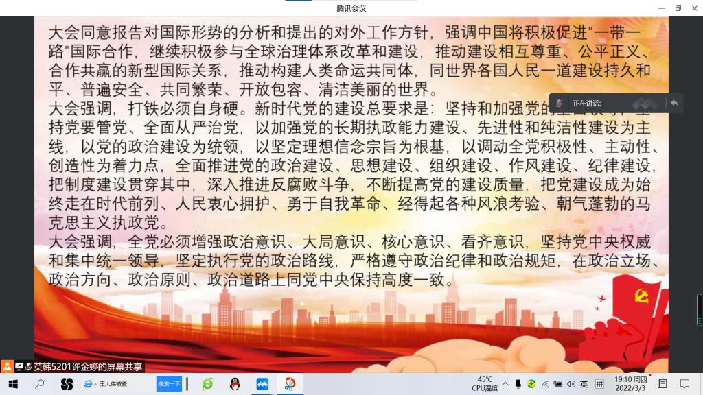 (通讯员 杨吉)3月2日至3日,太阳集团tyc9728各班组织开展学习“习近平总书记在中央人大工作会议上的讲话”线上主题团课,此次团课由各班团支书主持。