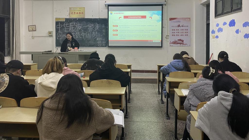 (通讯员 胡世丹)11月17日,太阳集团tyc9728开展“中华民族一家亲,同心共筑中国梦”主题团课。此次团课由各班团支书主持。