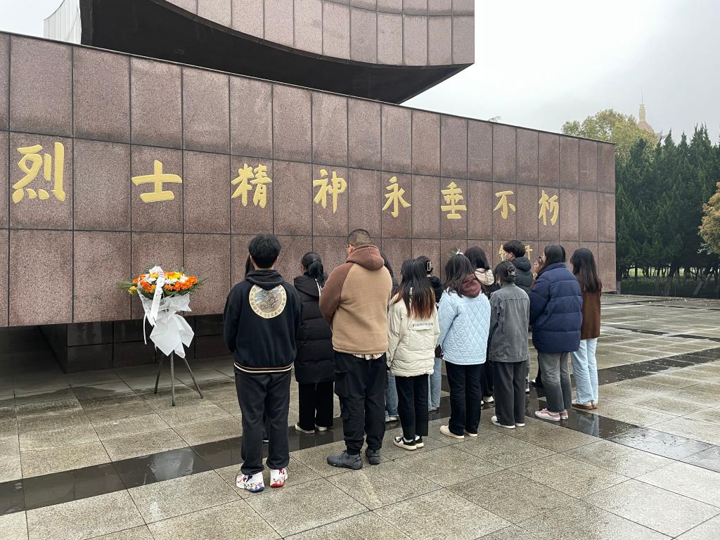 在烈士公墓前,贺黎子同学为代表向革命先烈献花,吴云波同学以缅怀先烈为主题演讲。活动现场庄严肃穆,全体人员怀着无比崇敬的心情鞠躬默哀。