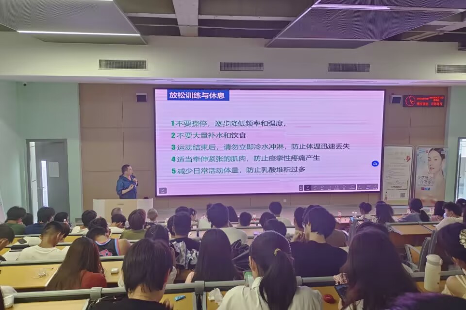 讲座伊始,皮肤科主任医师孙毅为大家带来主题为《青春的你还在为痘痘而烦恼吗?》的讲话。从痤疮、脱发、光老化和防晒方式三方面为我们讲解,提高了我们的预防意识。随后,医师张雯从定义、影响、临床类型、自我应对的一般疗法、引起的因素、辨别方法的等方面对足癣进行介绍。然后,康复科的骨科运动康复治疗师刘明辉主讲《如何防治老员工运动损伤》。医师传授给我们一些热身准备的技巧,以及锻炼器材的正确使用方法。让我们有意识的去避免损伤关节、韧带的行为。