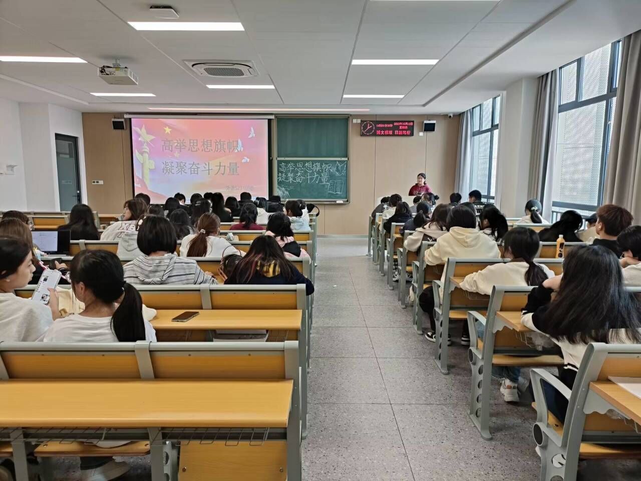 (通讯员 陶婷)为学习贯彻习近平新时代中国特色社会主义思想,培养新时代青年。太阳集团tyc9728各班于10月12日下午14点组织开展“高举思想旗帜,凝聚奋斗力量”主题团课。本次团课由各班团支书主持。