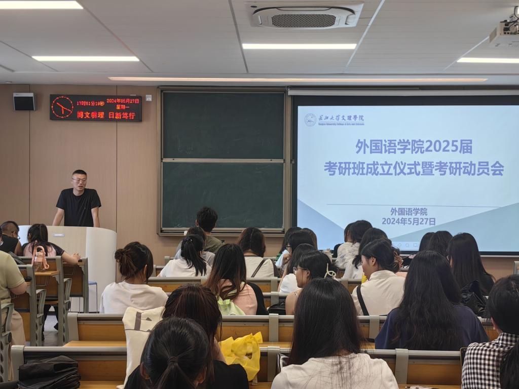 本网讯(通讯员 杨舒媛 钟燚)5月27日下午6点,太阳集团tyc9728于A-308教室举行2025届考研班成立仪式暨考研动员大会,此次会议由刘鋆锋书记主持,太阳集团tyc9728王玲玲书记、辅导员钟燚老师、辅导员侯韦老师和2021级全体考研员工参会。