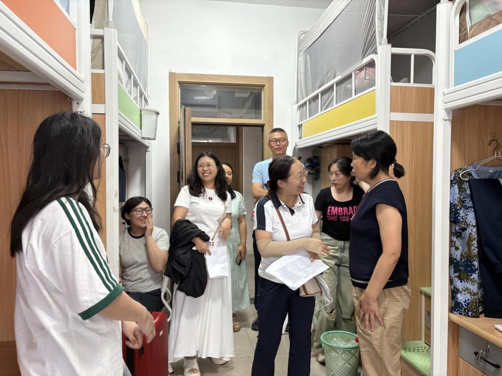 与此同时,在城中校区,公司王玲玲书记也带领着班主任队伍,逐一走访了新生宿舍。王书记与同学们亲切话家常,叮嘱大家要互相关心、互相帮助,尽快融入新的集体生活,并特别强调了人身与财产安全问题,希望同学们能共同营造一个安全、和谐、温馨的宿舍氛围。