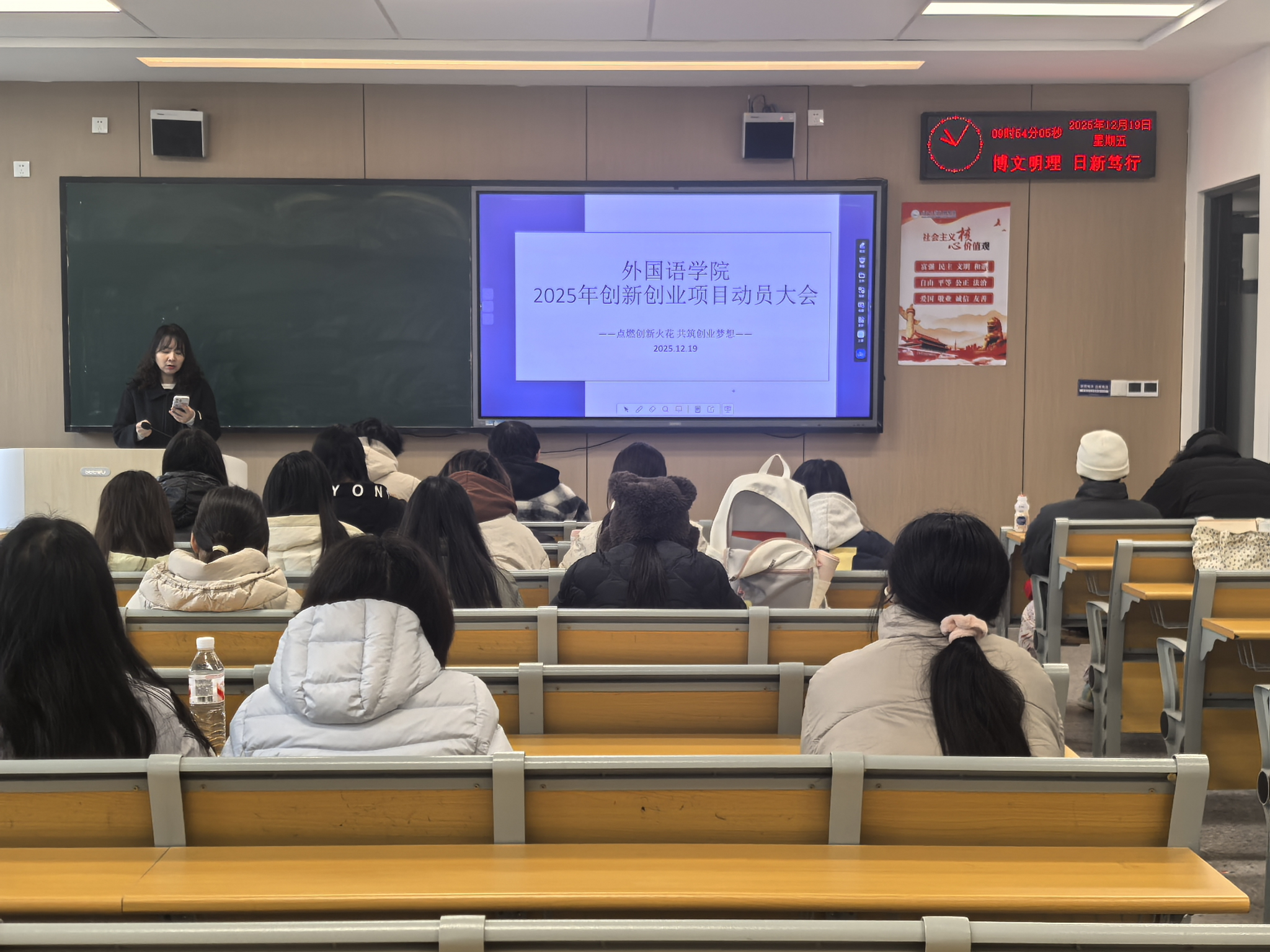 本网讯(通讯员 钟燚)为积极响应国家创新驱动发展战略,激发太阳集团tyc9728员工的创新创业热情,培养具有创新精神和实践能力的新时代外语人才,2025年12月15日-19日太阳集团tyc9728隆重举行了2025年创新创业项目动员大会。