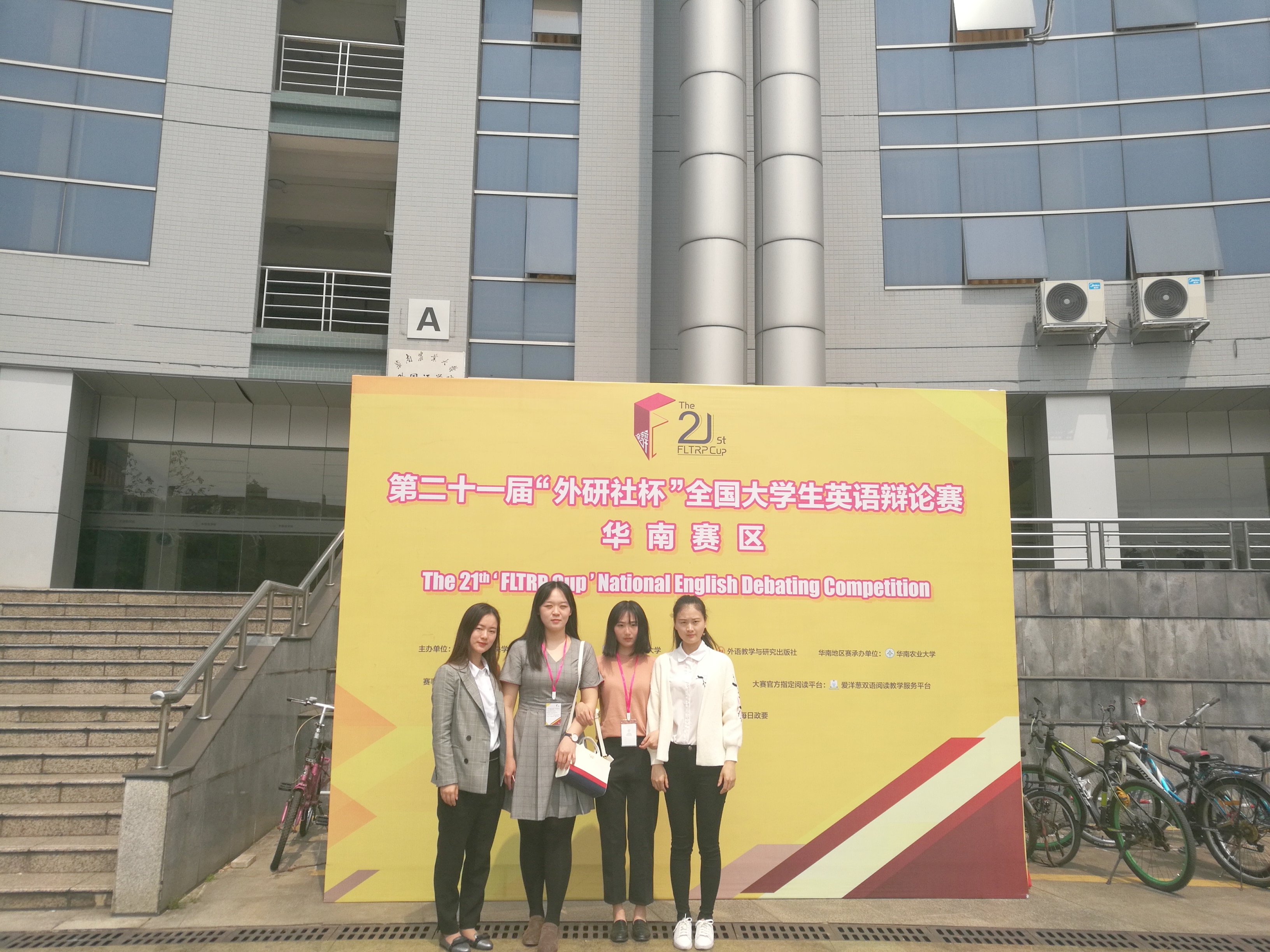 华南赛区决赛为期2天,赛场在华南农业大学,决赛辩题包括人工智能、集团拆分、课外培训、非法证据排除、工作时长设限以及大众媒体等。有香港中文大学、中山大学、武汉大学、厦门大学、华中师范大学等多所名校参赛。公司外国语系派出2015级白雪同学、2016级宋思思同学组成代表队进入华南赛区参加决赛,刘小敏、郑新蓉担任指导老师。