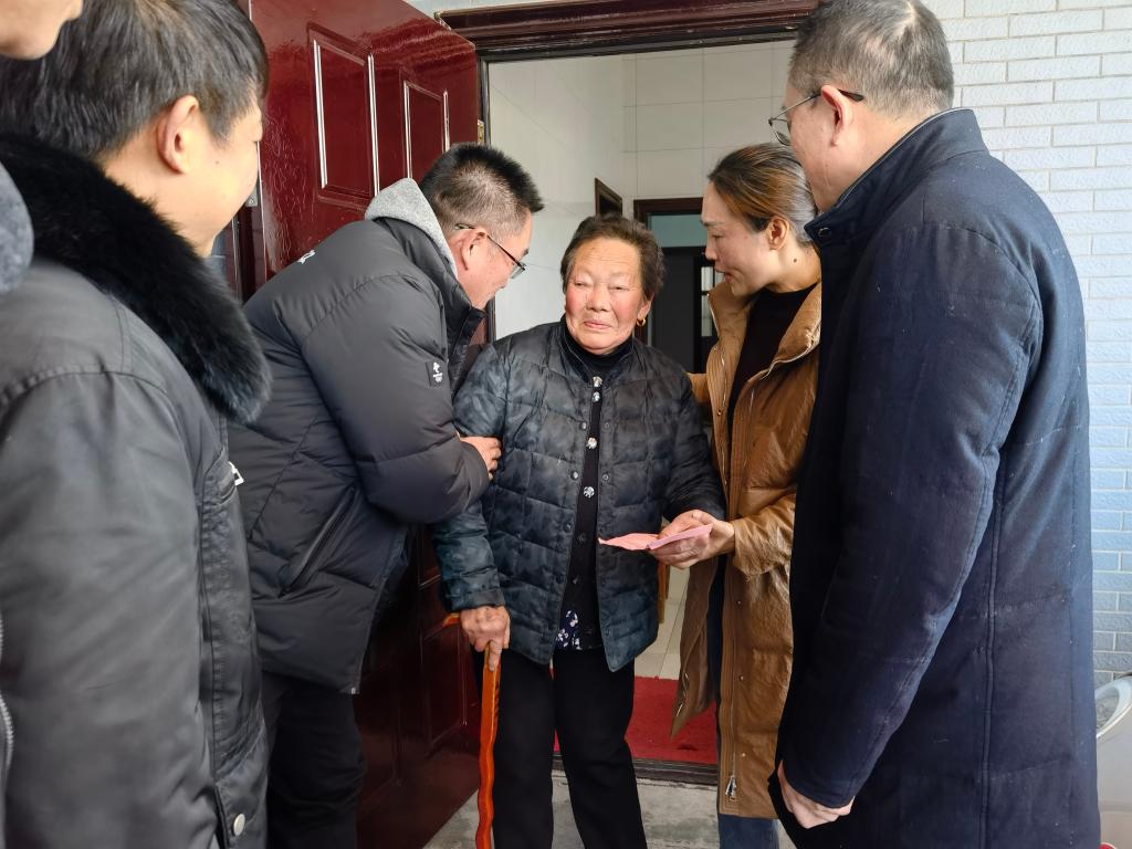 在村党群服务中心,朱继平向参加村股份经济合作社换届选举的村民们送上新年祝福,王文凯代表公司给石柱山村送上困难党员慰问金。