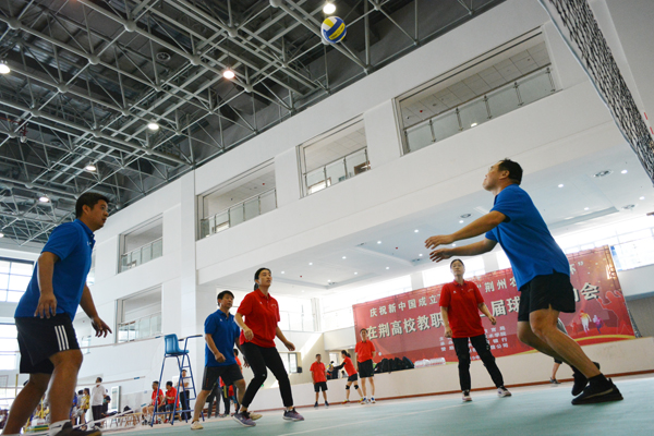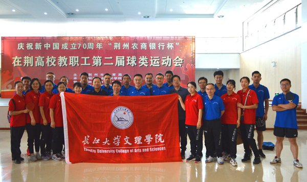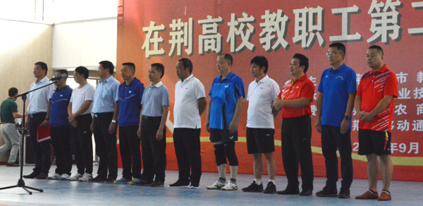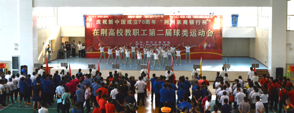 本网讯(记者 吴秀丽)今天(9月29日),2019年“庆祝新中国成立70周年”在荆高校教职工第二届球类运动会在荆州职业技术公司举行。公司领导朱继平、尹家经、康建虎、孙细望、曹骥、郭明虎和21名教职工组成代表队,代表公司参加运动会,庆祝新中国成立70周年。