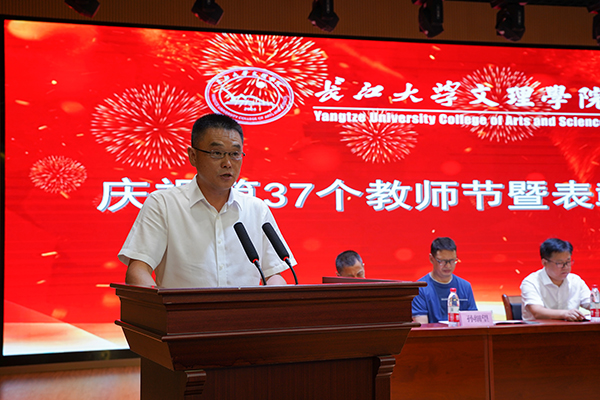 王文凯代表公司向全体教职员工致以节日问候和美好祝愿,向受到表彰的优秀教师表示热烈祝贺,向为公司建设发展辛勤耕耘的教学、管理、后勤一线的教职工表示衷心感谢。