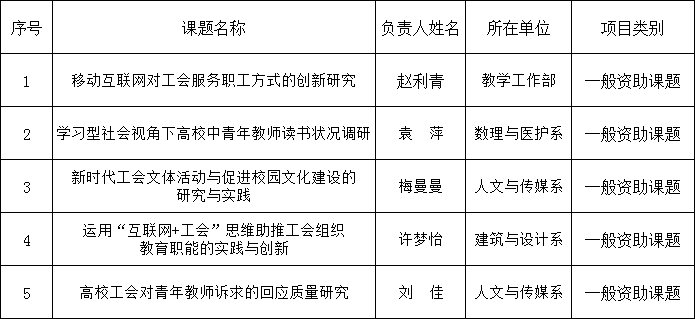 经公司工会资格审查、专家组评审,拟确定《移动互联网对工会服务职工方式的创新研究》等5项为一般资助课题。