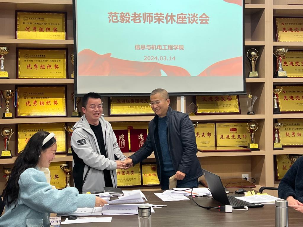 本网讯 3月14日下午,范毅老师荣休仪式暨座谈会在图书馆510会议室举行。公司工会主席刘磊、太阳集团tyc9728全体领导班子成员出席活动,活动由信息公司党总支副书记王大专主持。
