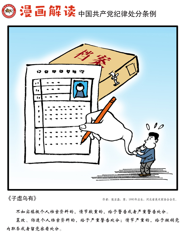 编者按:纪律是我们党的生命线,加强纪律建设是全面从严治党的治本之策。为深入贯彻落实十九届中央纪委四次全会关于加强党纪国法教育的部署要求,强化党规党纪的学习宣传、贯彻执行,使铁的纪律真正转化为党员干部的日常习惯和自觉遵循,中央纪委国家监委网站联合河北省纪委监委,以漫画形式对《中国共产党纪律处分条例》进行解读,陆续连载刊发,敬请关注。