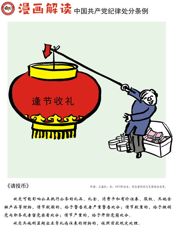 编者按:纪律是我们党的生命线,加强纪律建设是全面从严治党的治本之策。为深入贯彻落实十九届中央纪委四次全会关于加强党纪国法教育的部署要求,强化党规党纪的学习宣传、贯彻执行,使铁的纪律真正转化为党员干部的日常习惯和自觉遵循,中央纪委国家监委网站联合河北省纪委监委,以漫画形式对《中国共产党纪律处分条例》进行解读,陆续连载刊发,敬请关注。