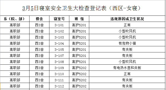 2020-2021学年第二学期第1周寝室检查结果通报