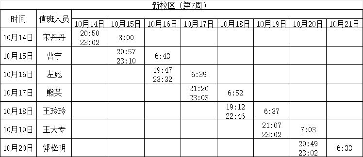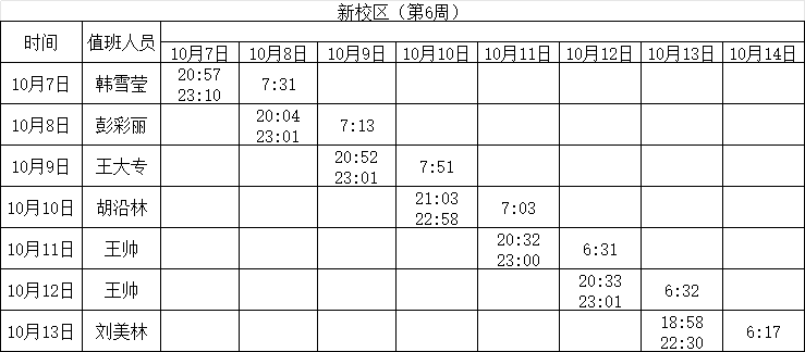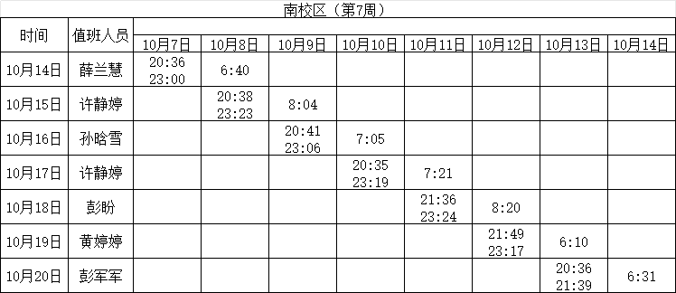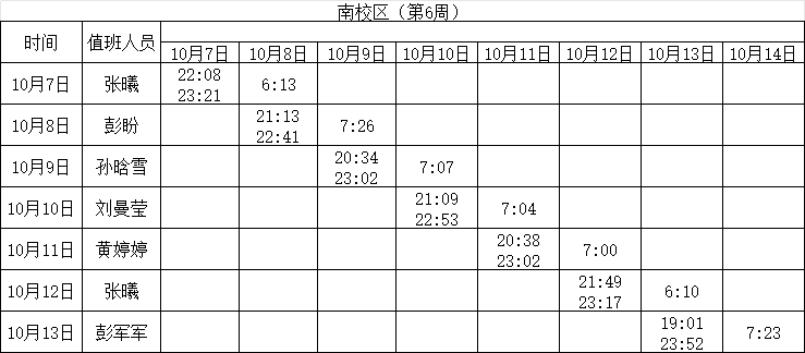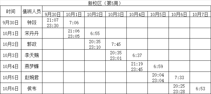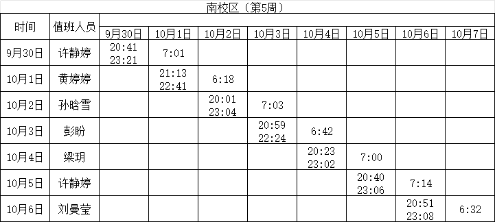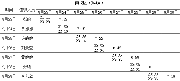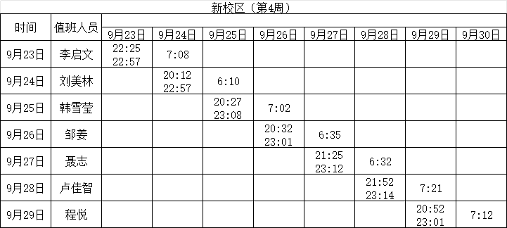 2024-2025学年第一学期第4-7周学工人员寝室值班通报