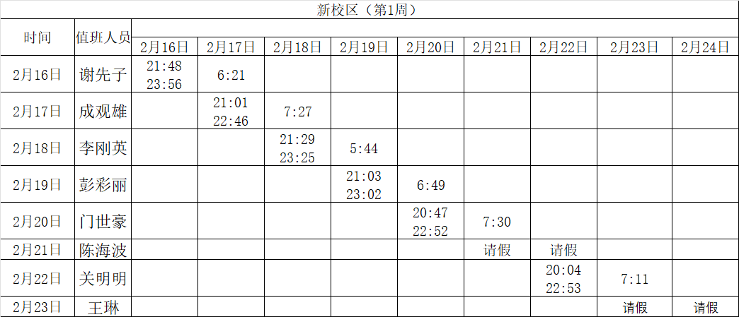2024-2025学年第二学期第1-2周学工人员寝室值班通报