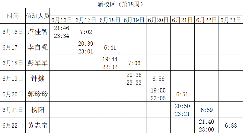 2024-2025学年第二学期第17-18周学工人员寝室值班通报