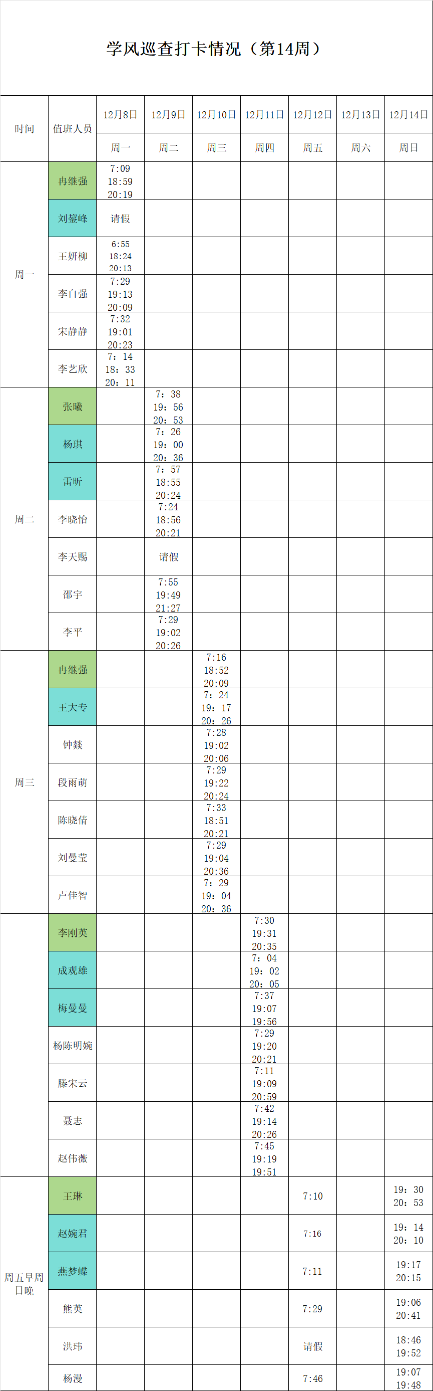 2025-2026学年第一学期第13-14周学风巡查打卡情况公示