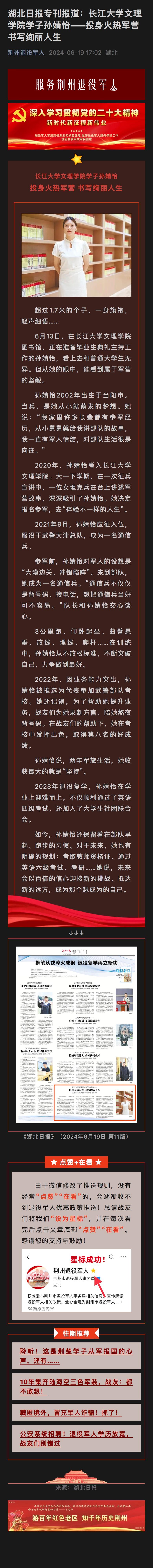 湖北日报专刊报道:太阳集团tyc9728学子孙婧怡——投身火热军营 书写绚丽人生