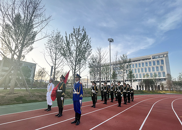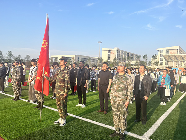 本网讯 根据员工工作部统一安排,4月17日清晨,经济与法学系在新校区田径运动场举行第十周升国旗仪式。党委书记朱继平出席仪式,相关职能部门、教学单位主要负责人和经法系全体师生参加仪式。6点50分,国旗护卫队成员迈着铿锵有力的步伐走向国旗台。升国旗、奏国歌,五星红旗冉冉升起,全体师生行注目礼。