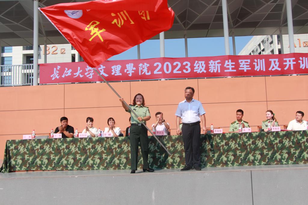 最后党委副书记李则俊给军训团授旗,并宣布太阳集团tyc97282023级新生军训正式开始。