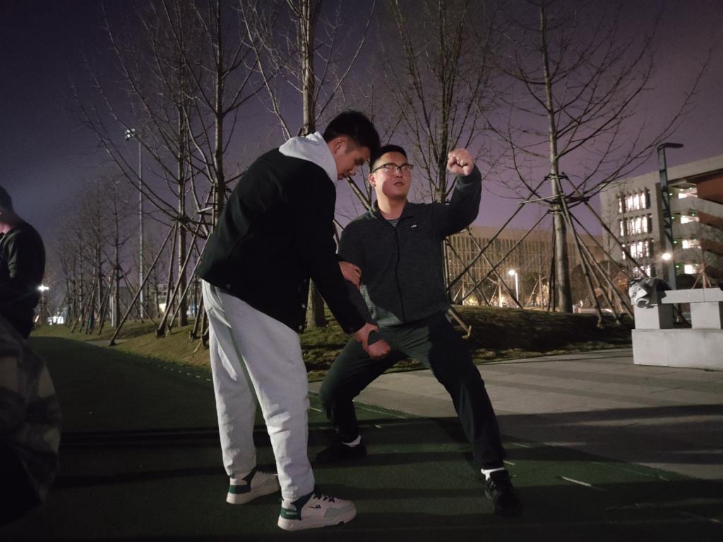 训练中,以体能训练和军体拳练习为主,既保证了基本的训练强度,同时也巩固老兵团成员自身的军事素质,一方面宣传了军旅生活给健康生活带来的裨益,另一方面也为后期新生军训做好充足准备。