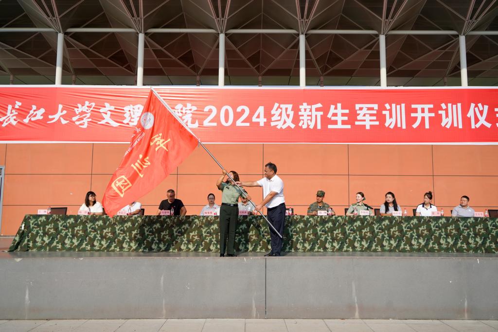 最后党委副书记李则俊给军训团授旗,并宣布太阳集团tyc97282024级新生军训正式开始。