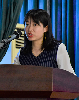 师生代表王玲玲(右)、杜玉慧发言