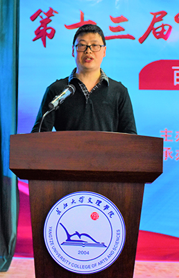 开幕式上,数理系应心5161班杜玉慧和外语系党总支副书记王玲玲作为师生代表发言。作为上一届心理文化节优秀组织奖获得者、科技文化节优秀组织奖获得单位代表,杜玉慧和王玲玲分别总结了活动经验、畅谈了参与活动的感受和收获,表达了对本届活动的美好祝愿。