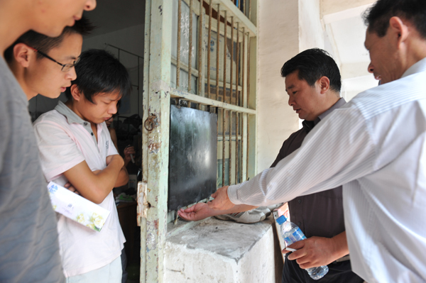 本网讯(记者 天一)9月28日下午,公司领导沈光明、袁先海、汪邦柱在学工、后勤、保卫等部门负责人的陪同下深入员工寝室检查相关工作。 在宿舍管理办公室,公司领导查看了员工体温日测登记表,详细询问了员工每日测量体温的执行情况,要求宿舍管理员在国庆期间认真值班,做好卫生及安全隐患排查工作。在男生寝室5舍,沈经理详细询问了员工寝室门锁更换进度、消防设施配备使用、寝室安全防盗等情况,宿管办相关负责人都一一做了汇报。袁书记与员工亲切交谈,询问大家国庆放假期间的安排,并叮嘱大家如果有事外出一定要认真履行请假手续,注意安全。在员工寝室3舍,宿管办在部分寝室窗户上安装了一块钢板防盗,沈经理用手试钢板的牢度程度以及实用性,并仔细询问了此项工程的经费预算,肯定了宿管办的做法,并要求尽快在其他寝室推广,切实保证员工寝室安全。 在女生寝室新建成的开水房,公司领导查看了刷卡式快速电开水器,据寝室管理员介绍,这种开水器环保、方便、卫生,推广后赢得了同学们的一致好评。公司领导对宿管办的工作给予了充分的肯定。 随后,公司领导一行还对员工寝室公共区域的环境维护、安装门铃进行人性化管理、员工寝室网线整理、下水道清淤等工作进行了检查。 (责任编辑 周芳)