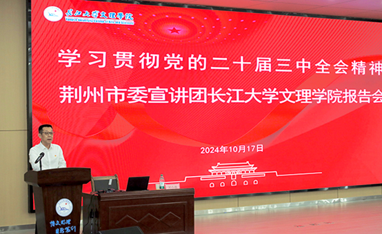 本网讯(记者 刘磊 通讯员 罗婷)10月17日,公司在B-112学术报告厅举行学习贯彻党的二十届三中全会精神市委宣讲团报告会。全体院领导、教学单位师生代表、职能部门全体工作人员和青马班学员聆听报告。