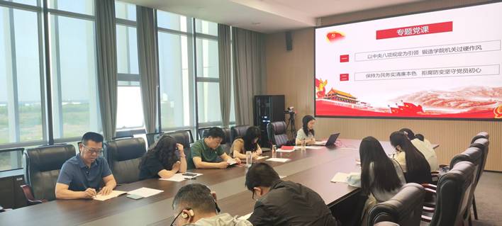 机关党总支书记周平川同志和机关一支部书记侯明丽同志结合贯彻落实中央八项规定及其实施细则精神存在的苗头性倾向性问题讲授专题党课。周平川同志以《以中央八项规定精神为引领 锻造公司机关过硬作风》为题从深刻领会中央八项规定的重大意义、准确把握中央八项规定的核心内容、持之以恒抓好中央八项规定精神的贯彻落实三方面带领党员同志共同学习中央八项规定及其实施细则精神。侯明丽同志以《保持为民务实清廉本色 拒腐防变坚守党员初心》为题从违规收送礼品礼金问题形成的原因和防违规收送礼品礼金反弹回潮、隐形变异的举措两方面引导党员同志们讲党性、重品行、做表率,要求党员同志做到自重、自省、自警、自励,为师生办实事,保持清廉本色,坚守党员初心。