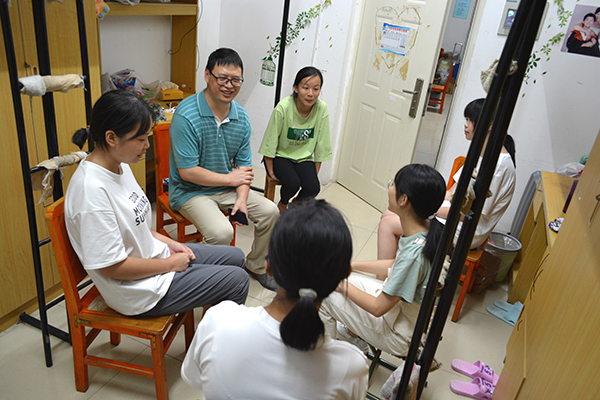 在城中校区,王文凯一行来到7号、3号和5号员工宿舍楼,看望了外国语系、人文与传媒系、工商管理系新同学,与大家亲切交流,了解同学们进入大学的感受。在7-239、3-310寝室,王文凯、康建虎询问新生的家乡,了解大家对新环境的适应情况。当得知同学们的大学规划和理想抱负后,王文凯十分高兴。他勉励大家励志考研、珍惜缘分、不负韶华,处理好寝室关系,相互激励、勤奋学习,争创学风标兵寝室,争做好学上进、知识丰富的青年一代。在3-201寝室,王文凯与一名新生家长握手交谈,听取家长对迎新工作和公司办学的意见和建议。王文凯说:“孩子交给我们,您请放心,我们会像对待自己的孩子一样对待员工。”听到这句话,家长信赖的点头答应。
