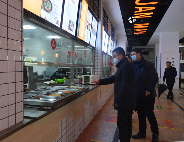 院领导一行查看了校园门禁系统、食堂、员工宿舍等区域,看望已经返校员工和相关工作人员,并对校园安全管控、宿舍水电安全管理及食堂卫生安全工作提出具体要求。