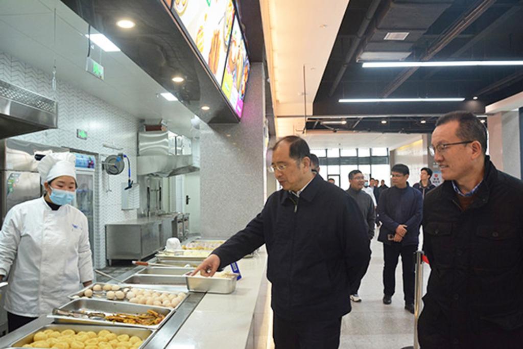 张幸平一行先后前往公司新校区图书馆、综合食堂,实地查看校园环境,听取王文凯作有关工作情况介绍,询问公司下一步工作计划和荆州大学城项目建设情况,对新校区校园环境打造、软硬件设施建设、开设专业发展规模等情况进行全面了解。张幸平一行还走进宿舍楼看望刚搬进新寝室的员工,与员工面对面交流,了解员工思想动态和学习生活情况。