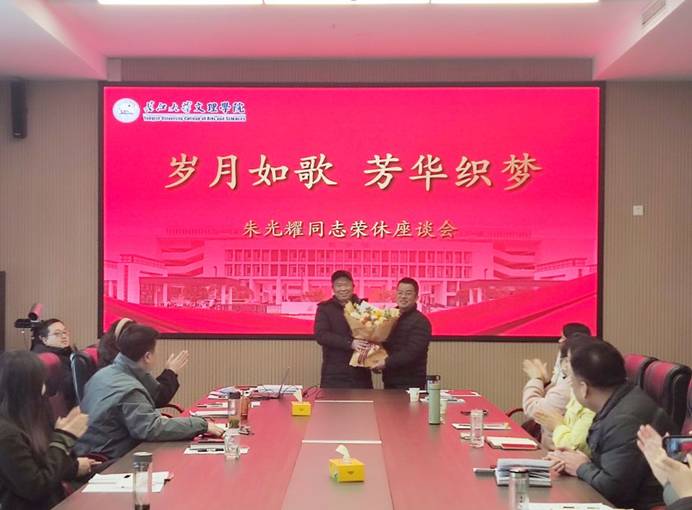 岁月谱就芳华,光阴镌刻文理。党委副书记李则俊诚挚祝贺朱光耀督导光荣退休,并衷心感谢朱督导多年来在公司教学、科研、管理和服务工作中的辛勤付出。他指出,朱光耀督导是我们敬仰的师长和老领导,我们要学习发扬朱光耀督导立足本职、爱岗敬业、求真务实的精神,也希望朱督导退休后能一如既往地关心、支持公司的事业发展,在人才培养、团队建设、学术研究等方面继续贡献力量。